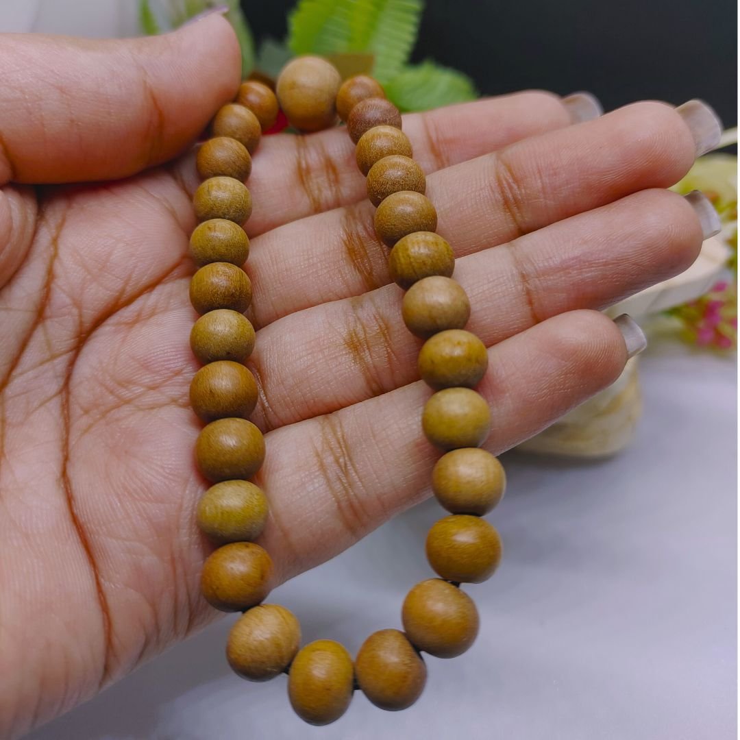 Chandan bracelet, made from sacred Sandalwood beads, is a symbol of purity and devotion. It promotes peace, enhances focus during meditation, and fills your surroundings with soothing energy and divine fragrance.
