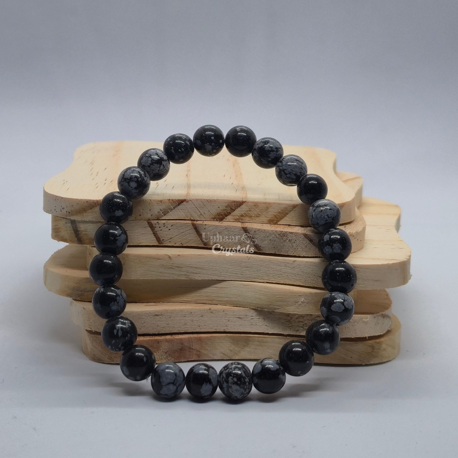 At uphaarcrystals.com, we offer both charged and uncharged Snowflake Obsidian Bracelets.